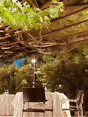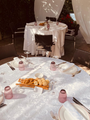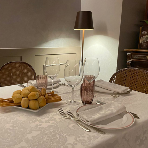 Disponiamo di due sale: una più ampia con una capienza di circa 80/90 coperti e una molto più riservata per circa 15 /18 posti adatta a colazioni di lavoro o riunioni di famiglia. In estate un magnifico pergolato fa da cornice alle vostre cene dove potrete ritrovare un’atmosfera distesa e romantica.